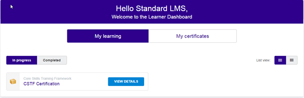 Below the overview of your learning is the My Learning section of the dashboard. This is where your courses are listed.