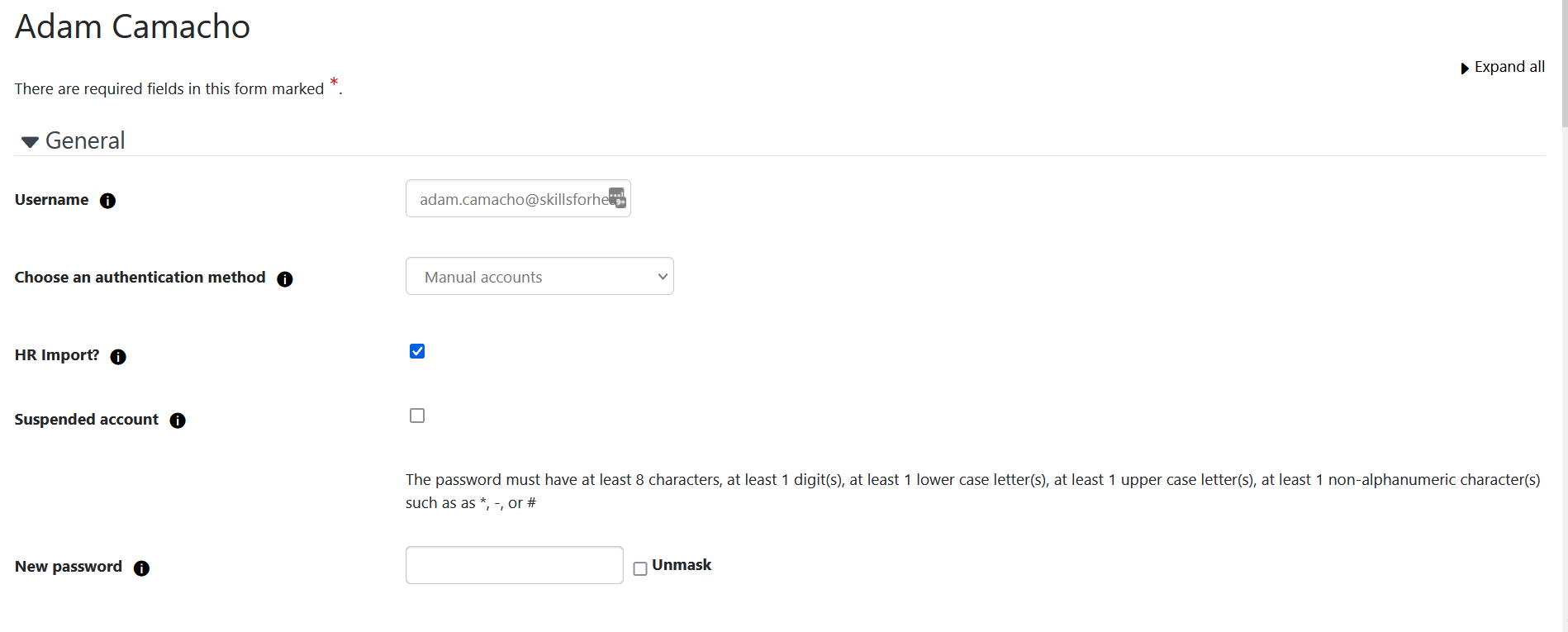 5. Click update profile to save changes and return to the list of users, or Update and view to save changes and be taken to the user's profile.